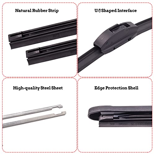 ★ 【Interfaccia a forma di U / J】 Questo tergicristallo è adatto per il 95% delle auto con braccio del tergicristallo a forma di U / J che copre una vasta gamma di modelli. c-itroen c5, j-eep cherokee, l-exus ct gs, h-yundai veloster, n-issan primera, h-onda civic, m-itsubishi outlander, k-ia sedona, s-mart forfour. Se la tua auto è dotata di braccio tergicristallo a forma di U / J, controlla l'immagine e scopri quale set può essere adatto alla tua auto.