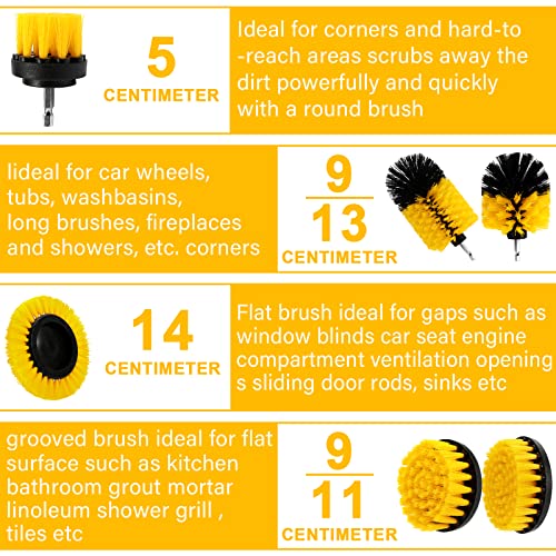 【Ampia applicazione】 Un set soddisfa tutte le tue esigenze di pulizia. Con questa pulizia del set di spazzole per trapano puoi affrontare qualsiasi applicazione di pulizia dell'auto o della casa, adatta per vasca da bagno, stucco, tappezzeria, superficie del bagno, pavimento, piastrelle, WC, cerchioni, lavello, cucina, auto, angoli, griglia e moquette ecc.