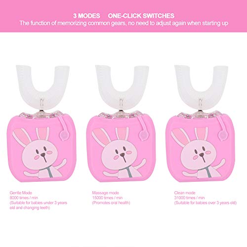 Spazzolini da denti automatici a forma di U, spazzolini elettrici per bambini comodi da caricare spazzolino da denti sbiancante tipo U, per(Pink Bunny 3-7 years old)