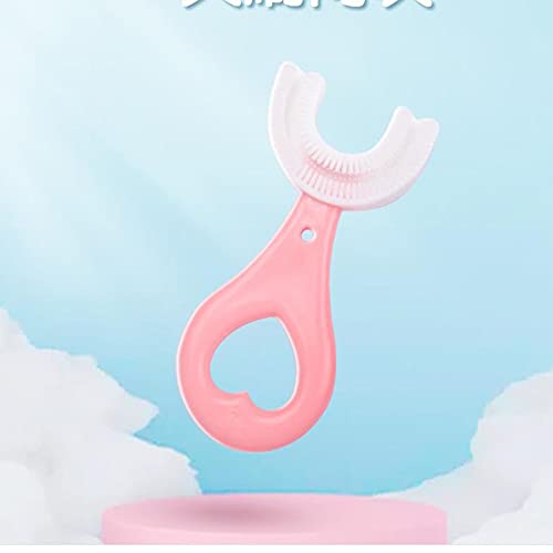2 spazzolini da denti a forma di U, per bambini, setole in silicone, per massaggio, per bambini da 2 a 6 anni, 2 pezzi, colore: rosa