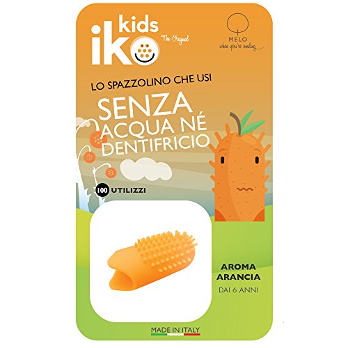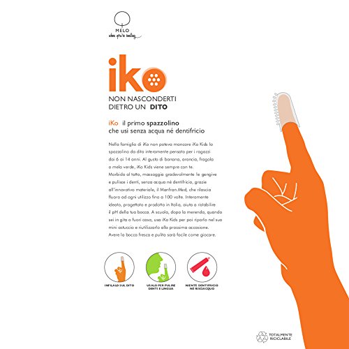 IKo Kids spazzolino da dito per bambini kit 2 pezzi, spazzolino denti senza bisogno di acqua e dentifricio, rilascia fluoro durante l'utizzo, pratico e igienico fino a 100 utilizzi, gusto fragola