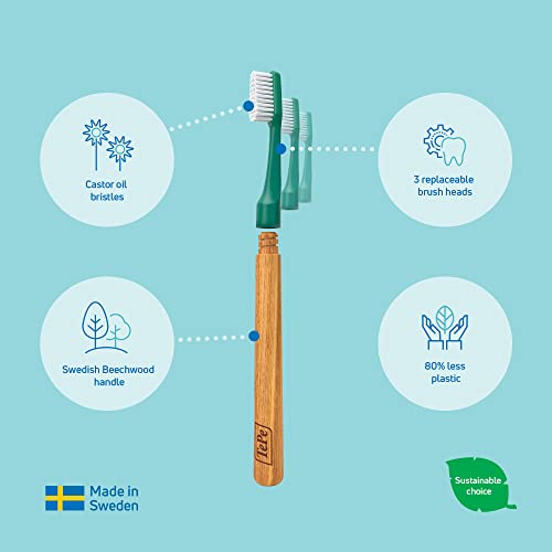 Spazzolino TePe Choice, morbido, verde, 1 manico in legno e 3 testine, spazzolino con setole morbide, ottimo per la pulizia dei denti e la rimozione della placca