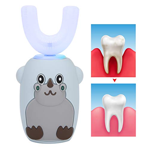 Spazzolino da Denti Automatico a Forma di U, Spazzolino Elettrico per la Pulizia dei Denti per Bambini, Spazzolino da Denti Impermeabile per la Pulizia della Bocca a 360 ° per L'igiene Orale(blu)