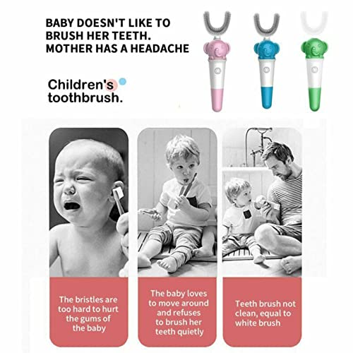Spazzolino da denti automatico a forma di U a 360° spazzolino da denti elettrico automatico, strumento di pulizia orale per bambini formazione denti pulizia intera bocca spazzolino per bambini (rosa)
