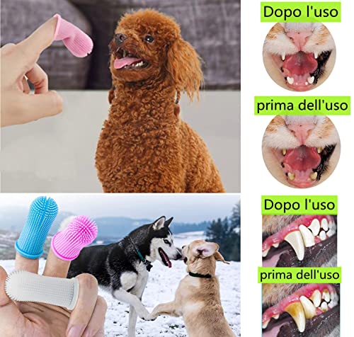 Spazzolino da Denti per Cani - Spazzolino Dentifricio per Cani Pulizia Denti Cane - 3 Pezzi 360° Setole Completamente Avvolte Spazzolini da Dito in Silicone Morbido per Animali Pulizia Lingua e Denti