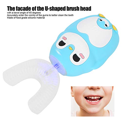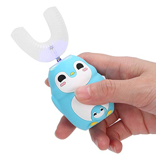 Spazzolino da Denti Elettrico per Bambini, Spazzolino Elettrico Automatico con Spazzole a Forma di U, Strumento per L'igiene Orale del Bambino Ricaricabile a Forma di U del Fumetto 3 Ingranaggi(blu)