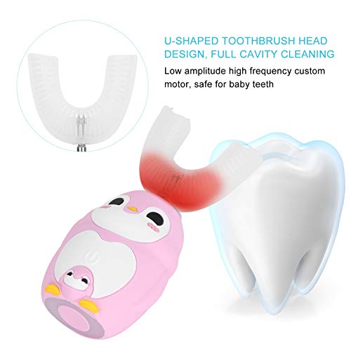 Spazzolino da denti elettrico per bambini, spazzolino da denti con testa a forma di U, IPX7 impermeabile a bassa ampiezza conveniente per i bambini(Pink)