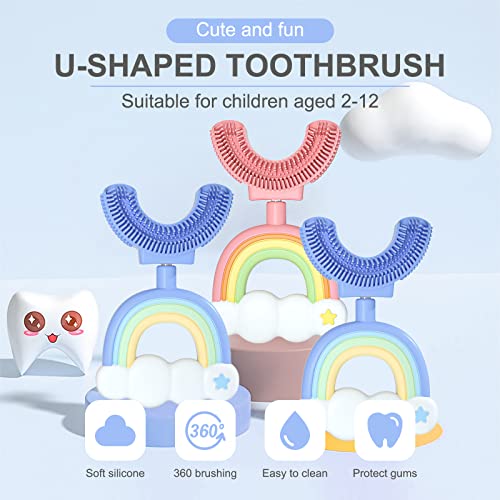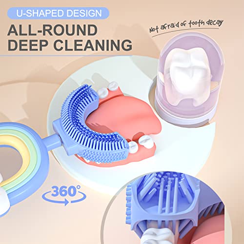 Spazzolino da Denti a Forma di U per Bambini, Spazzolino da Denti con Design per la Pulizia Orale a 360 Gradi Due Testine in Morbido Silicone, Spazzolini Manuale per Neonato (7-14anni)