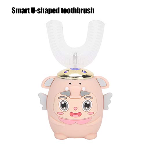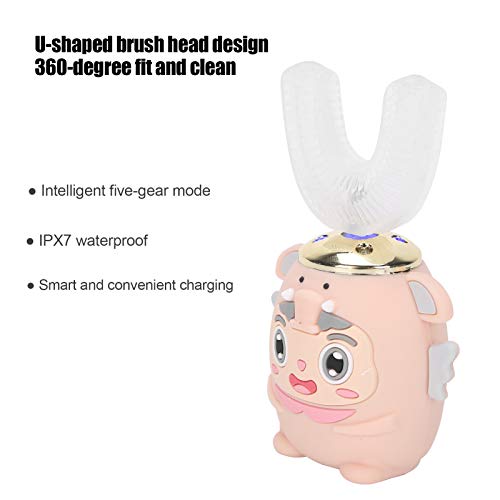 2-6 anni Spazzolino elettrico per bambini, spazzolino da denti a forma di U Pulizia a 360 gradi Autobrush impermeabile IPX7 con 5 modalità(rosa)