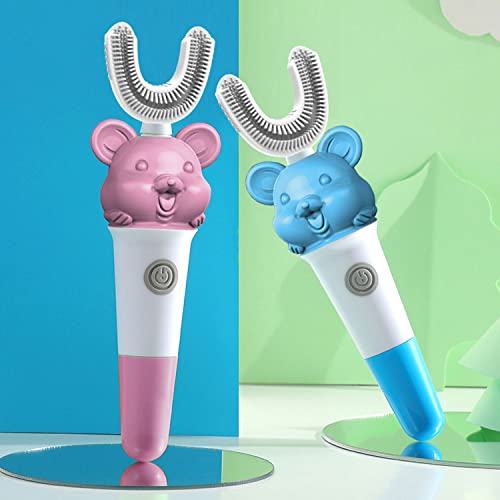 CAM2 - Spazzolino elettrico per bambini, a forma di U, a ultrasuoni, 360°, per bambini di età compresa tra 2 e 12 anni (rosa)