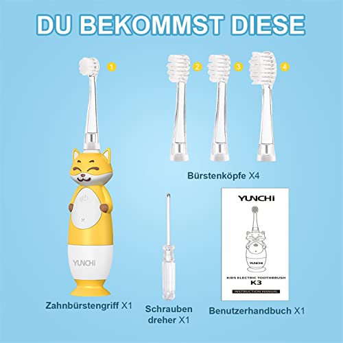 Spazzolino elettrico per bambini a partire dai 1 ai 12 anni, spazzolino elettrico per bambini, con luce LED, Smart Timer, 4, morbido spazzolino impermeabile IPX7, YUNCHI K3 (giallo) (giallo)