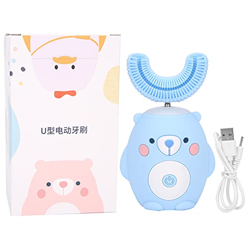 Spazzolino Elettrico a Forma di U per Bambini Spazzolino Automatico Simpatico Cartone Animato Modello di Orso per lo Sbiancamento dei Denti Igiene Orale, IPX7 Impermeabile(blu)