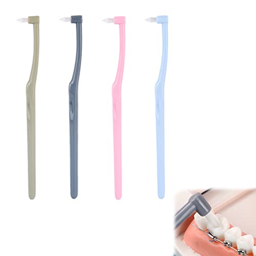 Spazzolino singolo a ciuffo, 4 pezzi Interspace Spazzola a ciuffo Spazzolino da denti morbidi Spazzolino da denti manuale per bretelle ortodontiche Gap Pulizia profonda (marrone,nero,blu,rosa)