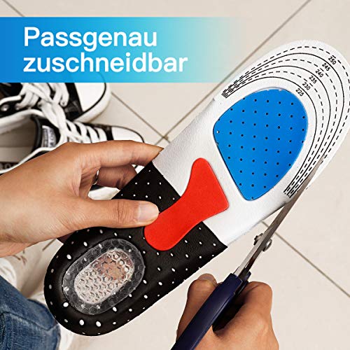 Durevole e antibatterico: grazie all'elevata resistenza e resistenza agli strappi, i vostri piedi potranno godere a lungo delle solette in gel. Grazie alla migliore distribuzione della pressione, le solette in gel distribuiscono la schiena e le articolazioni. Gli urti duri vengono ammortizzati con un equipaggiamento antibatterico che previene i fastidiosi odori.