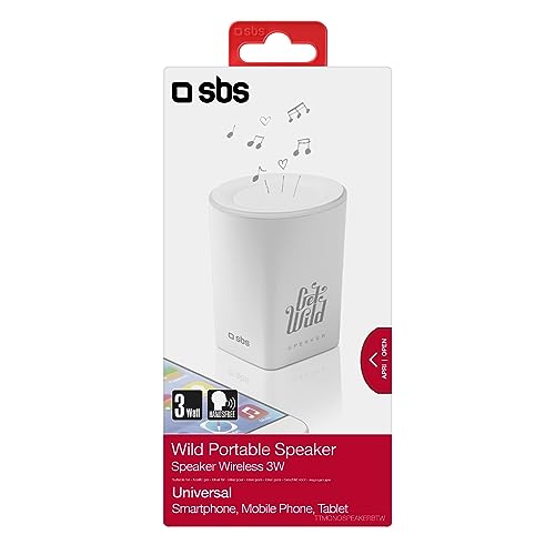 SBS mini speaker Bluetooth 3W di potenza, portatile e compatto, funzione vivavoce, illuminazione superiore, ingresso AUX per jack da 3,5, fino a 5 ore consecutive di musica, bianco