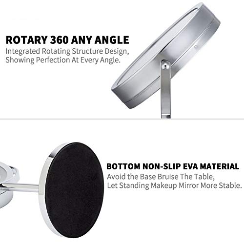 【Raggiungere un trucco impeccabile è sempre facile: lo specchio per il trucco illuminato a led a doppia faccia con ingrandimento 1x/10x è perfetto per una visione reale e un'applicazione del trucco. Lo specchio ingranditore 10x dello specchio cosmetico permette di assicurarsi ogni dettaglio dei vostri capelli. Lo specchio per il trucco degli occhi ti aiuta a vedere ogni dettaglio in modo semplice e senza sforzo ruotare su ciascun lato e mostrarli la tua bellezza, ingrandimento 1x per visualizzare il tuo aspetto generale.