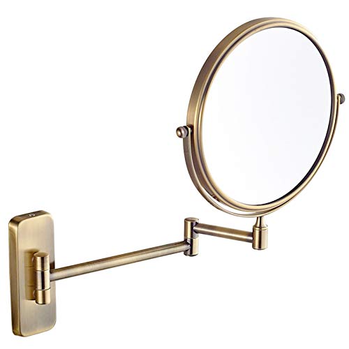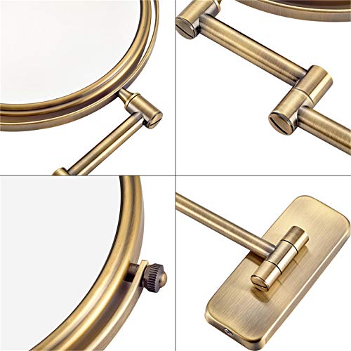Specchi per trucco da parete, specchietti da toeletta bifacciali in ottone da 8 pollici con ingrandimento, specchi da bagno orientabili a 360 ° estensibili,Ottone,3X
