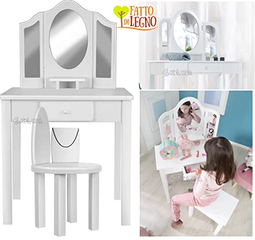 Specchiera Giocattolo per bambine in legno specchio acconciature altezza 81 cm. con sgabello Specchiera del ghiaccio