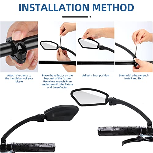 Può Essere Ruotato: Specchietti per bicicletta ruota e si inclina di 360°. La sfera Wanxiang dove lo specchio incontra lo stelo è progettata con uno speciale motivo a grana per massimizzare l'attrito, quindi lo specchietto retrovisore della bici non oscillerà facilmente anche su strade accidentate e non devi regolare costantemente la sua posizione durante la guida.