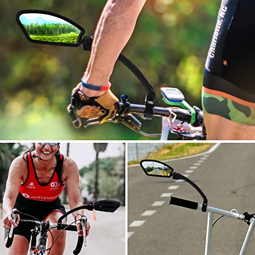 Ampia Gamma di Usi: Gli specchietto bici elettrica si adattano a manubri di diametro 21-26 mm, facili da installare e rimuovere, compatibili con la maggior parte delle biciclette, mountain bike, e-bike, e-scooter, scooter e moto.