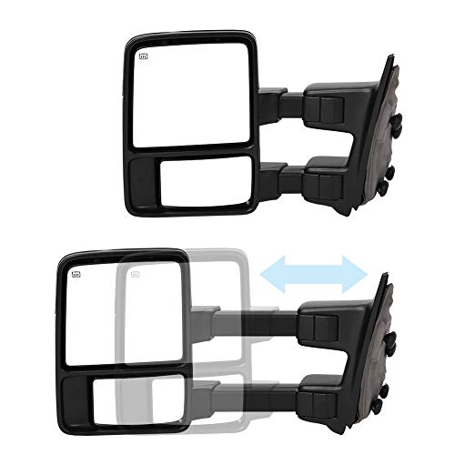 Specchietti di traino compatibili per 99-07 Ford F250/F350/F450/F550 Super Duty, 01-05 Set coppia di escursione estensibile Fumo riscaldato con luce di segnalazione Specchietti laterali