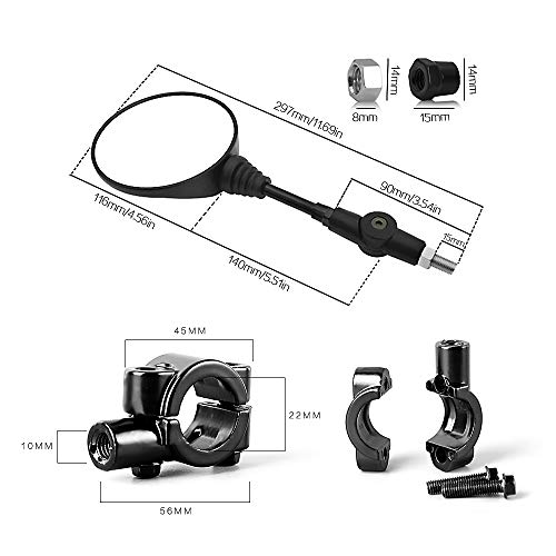 Specchietti Moto, Universale Manubrio Specchio Supporto, Specchietto Retrovisore Rotondo Pieghevole Universale e Set di Base di Montaggio da 10 mm per Motocicli, Scooter, Biciclette