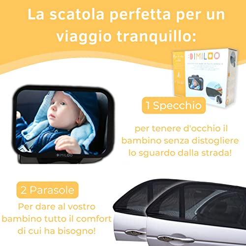Specchietto Retrovisore Bambini e 2 Tendine Parasole Auto Bambini | Specchio Retrovisore Auto 100% Infrangibile | Neonato Accessori Utili per viaggiare in sicurezza | Neonato Accessori auto