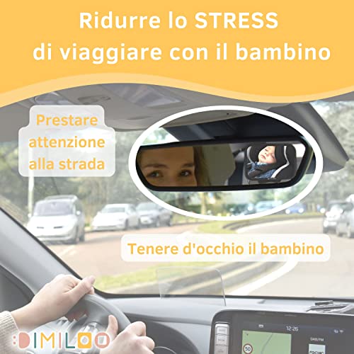 ♀️ RIDURRE LO STRESS di viaggiare con il bambino: con lo specchietto retrovisore auto Dimiloo non è mai stato così facile e rassicurante guidare tenendo d'occhio il bambino. In un batter d'occhio, senza voltarvi e rimanendo concentrati sulla strada, potrete capire cosa preoccupa il vostro bambino: un ciuccio o un giocattolo perso, una testa che cade di lato, una coperta spostata, un rigurgito... e quindi rispondere ai suoi bisogni o garantire la sua sicurezza il più rapidamente possibile.