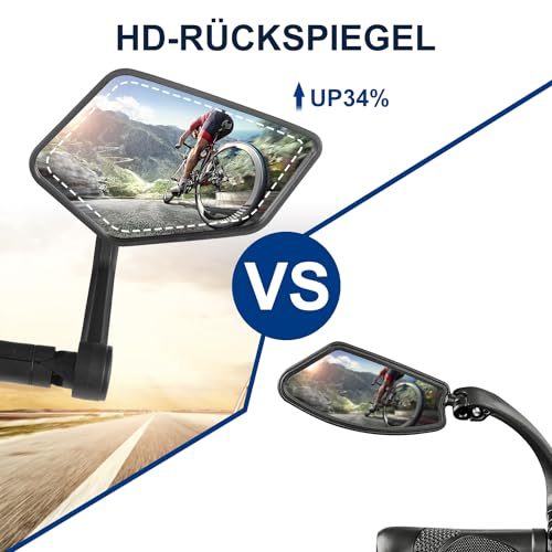 【Ampio campo visivo】 I bracci più larghi e più lunghi del nostro specchietto per bicicletta offrono la massima sicurezza stradale. Il nostro specchietto retrovisore migliora la visibilità posteriore del 34% e riduce gli angoli ciechi.