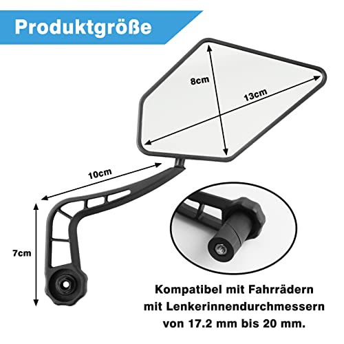 【Ampia applicazione】: lo specchietto per bici è adatto per il diametro interno del manubrio 17,2-20 mm.Si prega di misurare il diametro esterno del manubrio della bici dello specchio prima dell'acquisto.Adatto per la maggior parte delle biciclette, come bici da strada, mountain bike, e-bike, motociclette, motociclette elettriche, Eccetera.