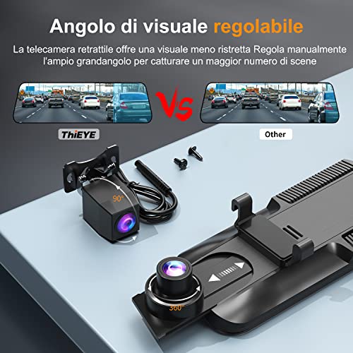 4K Dash Cam Specchietto Retrovisore, ThiEYE 10" Touchscreen Telecamera per Auto, Dashcam Auto Doppia Camera con 170° Grandangolo, Visione Notturna, Sensore G, Monitor Parcheggio & GPS