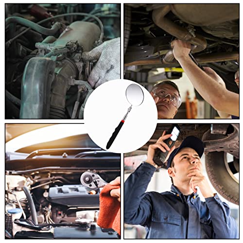 Specchietto Telescopico per Ispezione, Circolare Specchietti Ispezione con Impugnatura Estesa Specchi per Ispezione per Controllo delle Condizioni del Veicolo (Maniglia da 26~75cm)