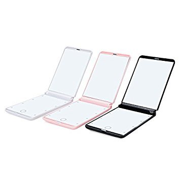 Specchietto da viaggio pieghevole e compatto per il trucco, specchio tascabile con 8 LED, da donna