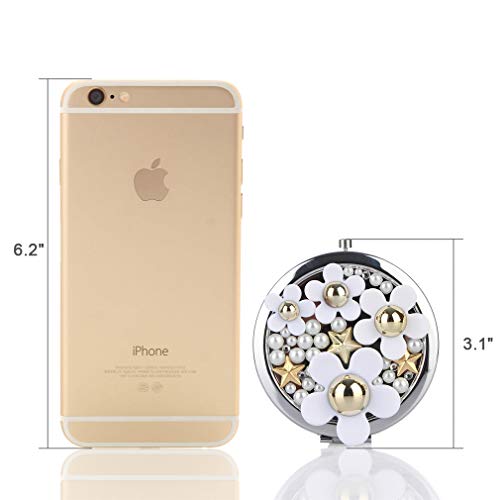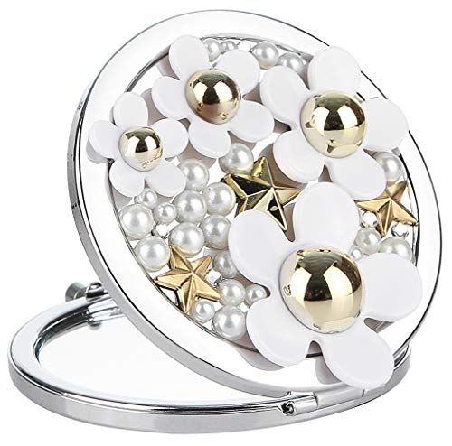 Specchietto La Vogue Perfume con motivo a margherite, da donna, specchio compatto e portatile per trucco, specchio da borsetta, White, Silver (Argento) - La Vouge