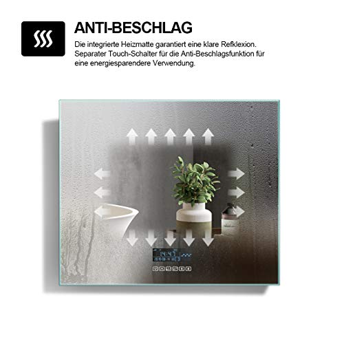 LED a risparmio energetico: basso consumo energetico, alta qualità, impermeabilità (IP 44), durata del LED: 50.000 ore, specchio senza rame e piombo con bordi smussati di alta qualità, maggiore durata.