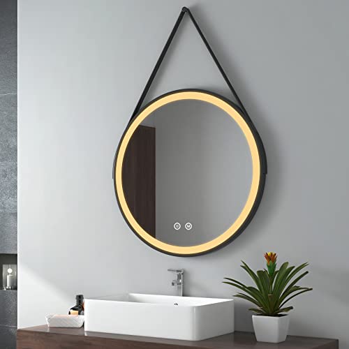 EMKE Specchio da bagno rotondo a LED, diametro 70 cm, con illuminazione a LED, interruttore touch, 3 colori di luce IP44