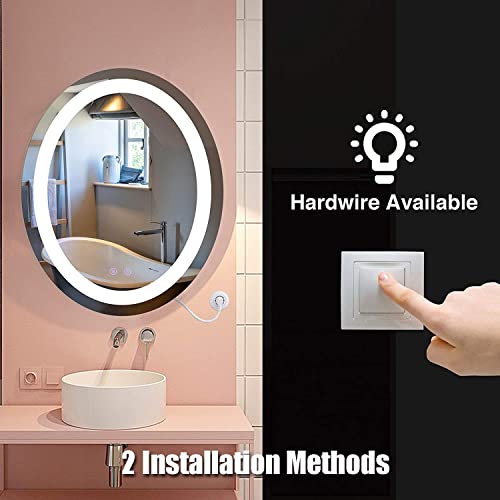 Specchio da Bagno Rotondo Illuminato a LED Retroilluminato + Specchi Illuminati Frontali con Luci, Dimmerabile, Sensore Touch, Specchio da Parete per Bagno Impermeabile IP44,50Cm/60Cm/70Cm/80Cm/90Cm