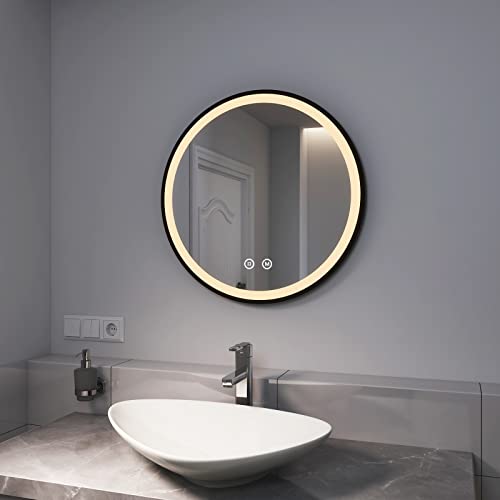 EMKE Specchio Bagno Rotondo con Luce 60 cm, Specchio Bagno LED con Interruttore Tattile Luce Bianca Fredda 6500K / Luce Calda 3000K / Luce Neutra 4000K (Tipo 3)