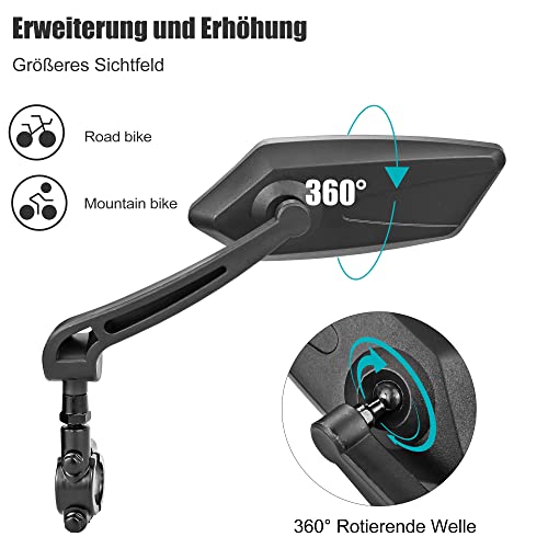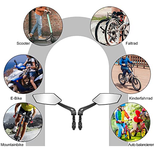 【Vetro di qualità automobilistica】 Il vero vetro antiriflesso e antiriflesso ti offre una visione perfetta e cristallina nello specchietto retrovisore per e-bike / e-bike e tutte le altre biciclette, immagine speculare ad alta risoluzione, durevole, alloggiamento infrangibile, antigraffio, antiriflesso, stabile e durevole Realizzato in fibre di nylon plus e vero vetro resistente agli urti, questo specchietto retrovisore per bicicletta rimane intatto anche dopo una caduta.