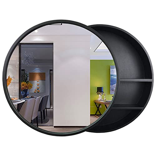 Specchio Contenitore per Bagno Specchio in Legno Massello con Ripiano Specchio per Trucco Mobile Pensile A Parete Tondo, Sinistra E Destra Push-Pull (Color: Black, Size: 50cm/19.7inches)