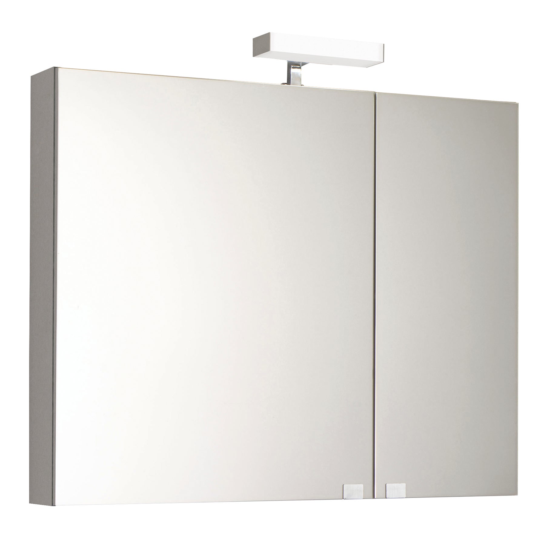 Specchio contenitore 2 ante cemento chiaro con lampada a LED L81 H70 P15