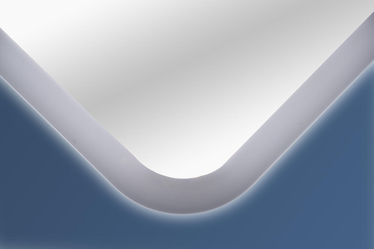 Specchio filo lucido 4 mm di spessore angoli arrotondati con sabbiatura perimetrale retroilluminato LED