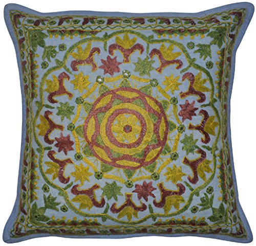 Specchio a mano, in cotone ricamo indiano lavoro federa cuscino 40 x 40 Cm, confezio