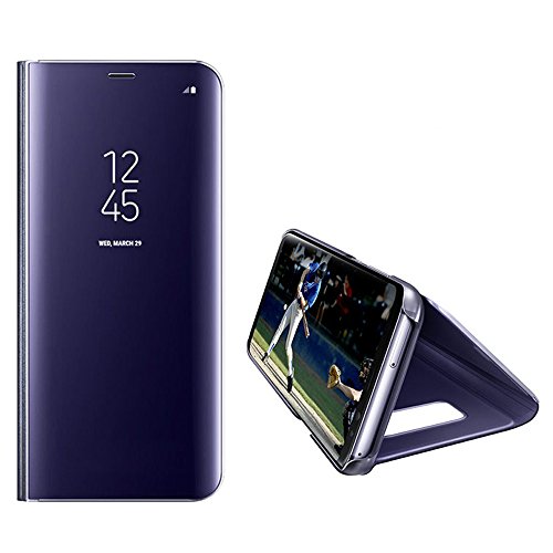 Specchio Custodia per Galaxy J7 2016,Custodia in Pelle per Galaxy J7 2016,Leeook Creativo Nobile Specchio Effetto Metallo Placcante Chiaro Trasparente Vista PC Davanti Ultra Sottile PU Pelle Indietro Protettivo a libro Portafoglio Flip Cover Copertina Caso con Funzione Stand per Samsung Galaxy J7 2016 + 1 x Nero Stilo- Viola
