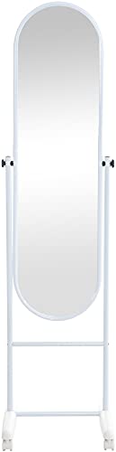 CLP Specchio A Figura Intera Nane con Ruote I Specchiera da Terra per Guardaroba I Inclinabile con Forma Ovale E Cornice in Metallo, Colore:Bianco