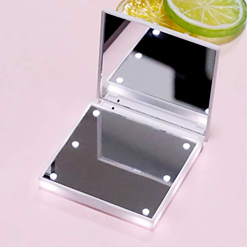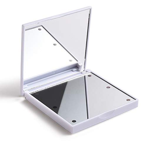 Specchio illuminato a LED, specchio compatto pieghevole a doppia faccia da 2,8 × 2,8 pollici, da utilizzare per ragazze, donne o trucco professionale , bianco