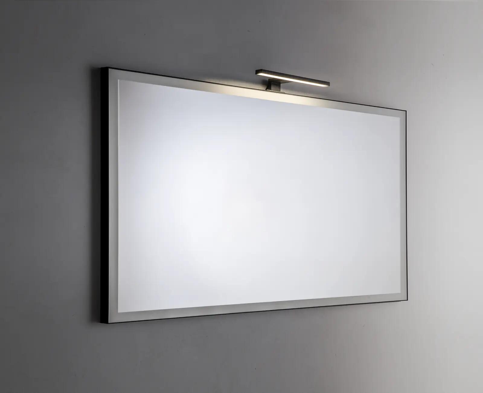 Specchio cm. 140x70 rettangolare 4 mm filo lucido con cornice nera, sabbiatura perimetrale 1 cm. su fronte specchio, lampada LED nera e sensore laterale su cornice a DX. SUPERFICIE RIFLETTENTE (SPECCHIO). ILLUMINAZIONE AMBIENTALE. LINEE SEMPLICI E PULITE ABBINABILI A QUALSIASI STILE. RISPARMIO ENERGETICO. MATERIALI DI OTTIMA QUALITA'