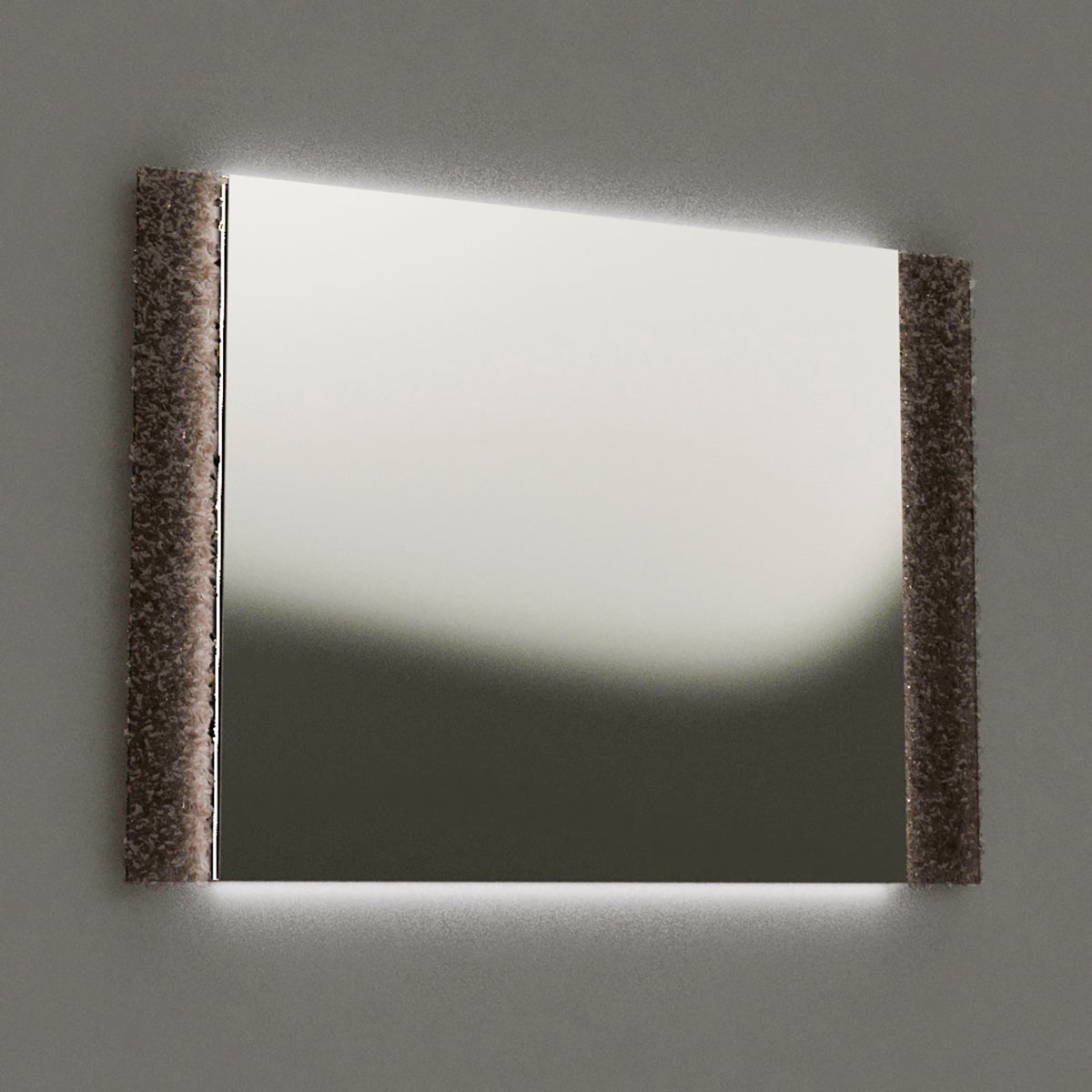 Specchio rettangolare cm. 90x65 con cornice in vetro fuso bronzo retroilluminata led IP44