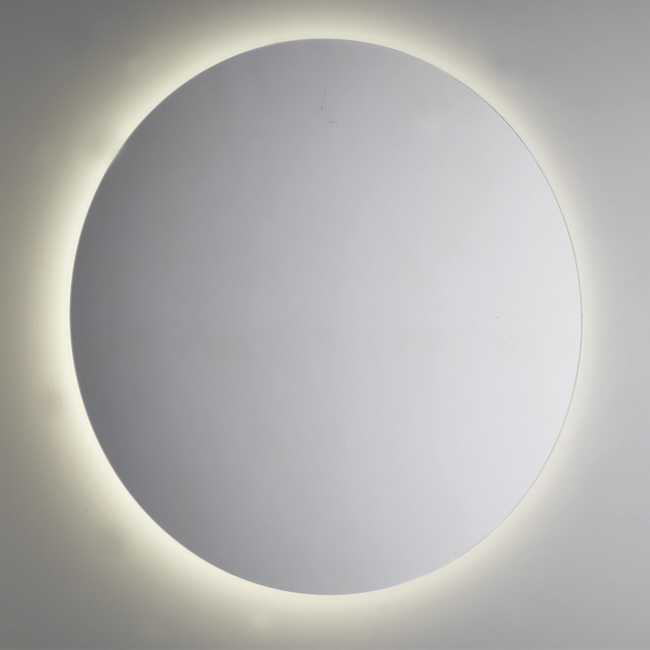 Specchio 4 mm filo lucido rotondo diametro cm.100, con telaio circolare retro specchio in metallo e retroilluminazione led perimetrale. superficie fiflettente. illuminazione di un ambiente. illuminazione led a risparmio energetico. personalizzazione dell'ambiente. tecnologia illuminotecnica led ad alte prestazioni