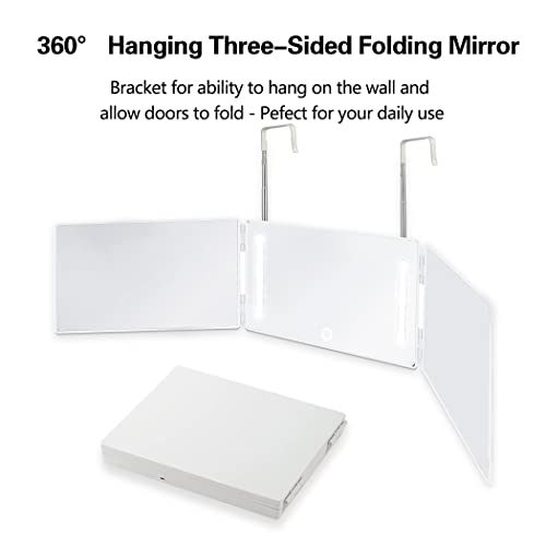 Specchio a 3 vie con illuminazione a LED Trifold Specchio con staffe per il taglio di capelli self-make-up